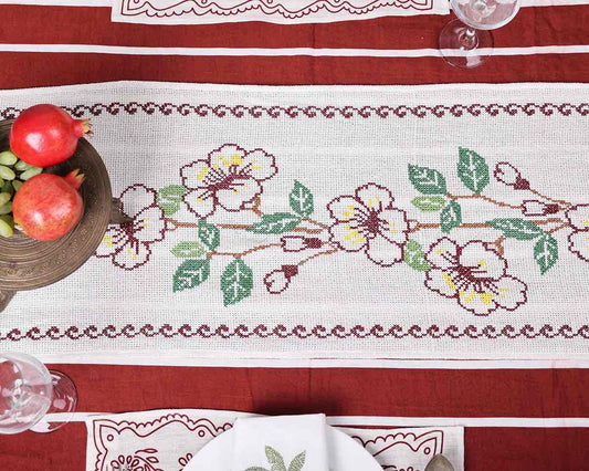 Floral Cross Stitch Embroidered Table Runner