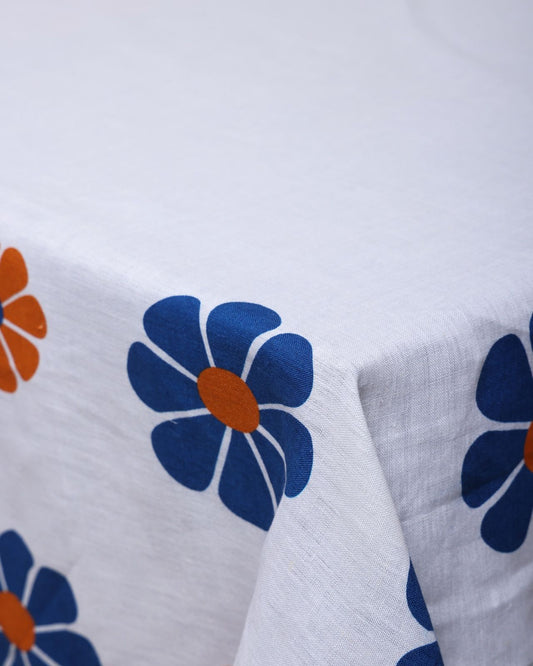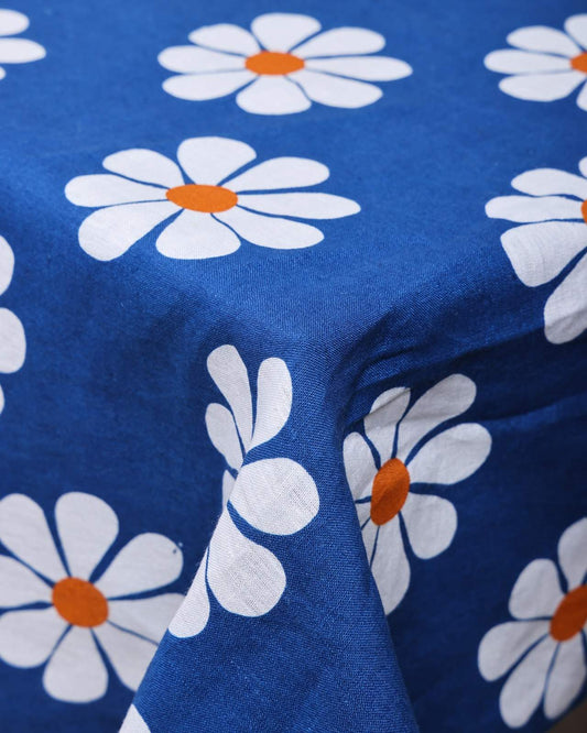 Daisy Printed Tablecloth - Indigo