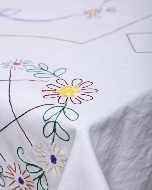 Daisy Printed Tablecloth - Off White