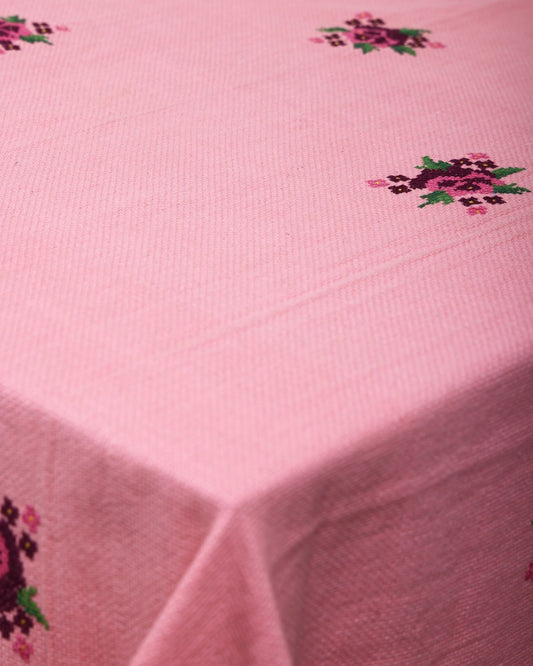 Rose Cross-Stitch Embroidered Tablecloth