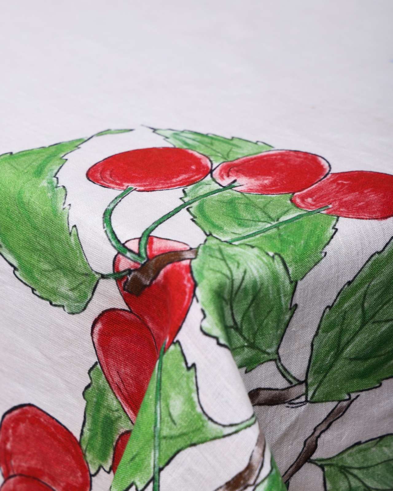 Bring a burst of nature to your table with this exquisite cherry-themed hand-printed tablecloth. The vibrant red cherries paired with lush green leaves create a lively garden vibe. Crafted on premium linen fabric, it adds charm to both indoor and outdoor settings, transforming meals into cheerful, garden-inspired experiences.