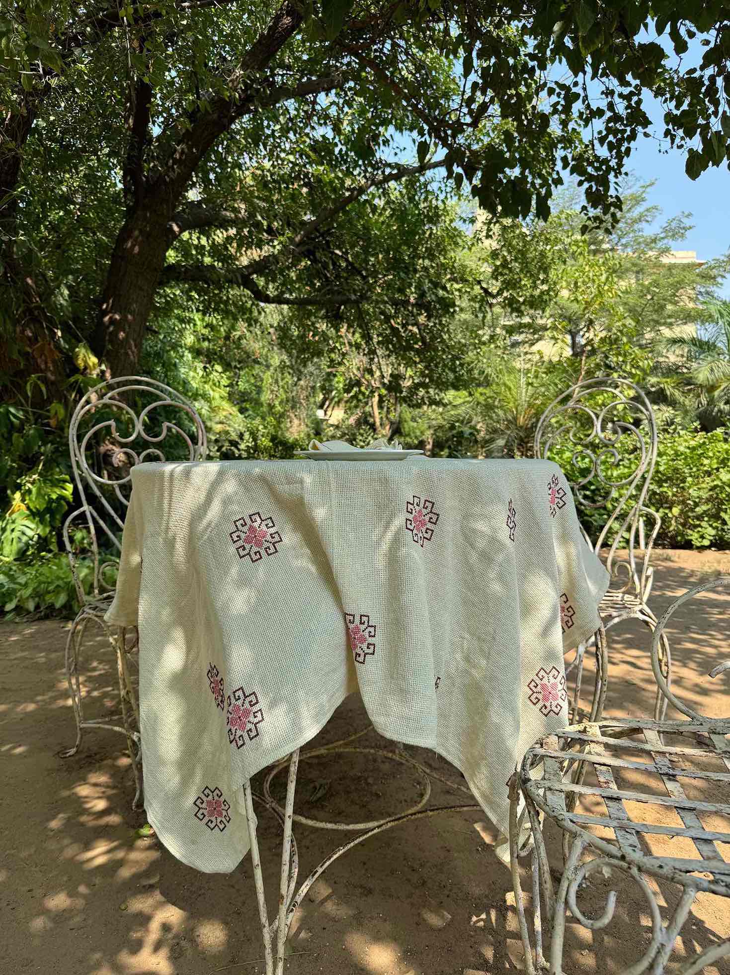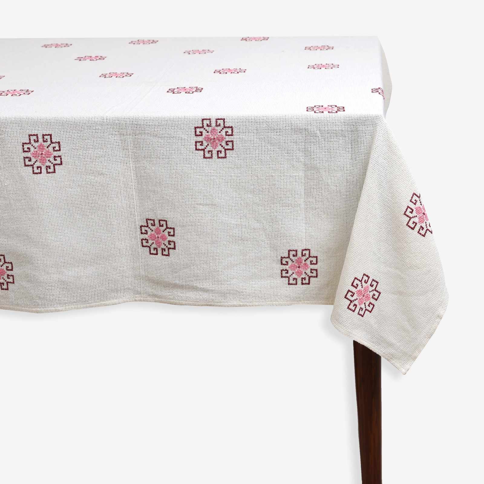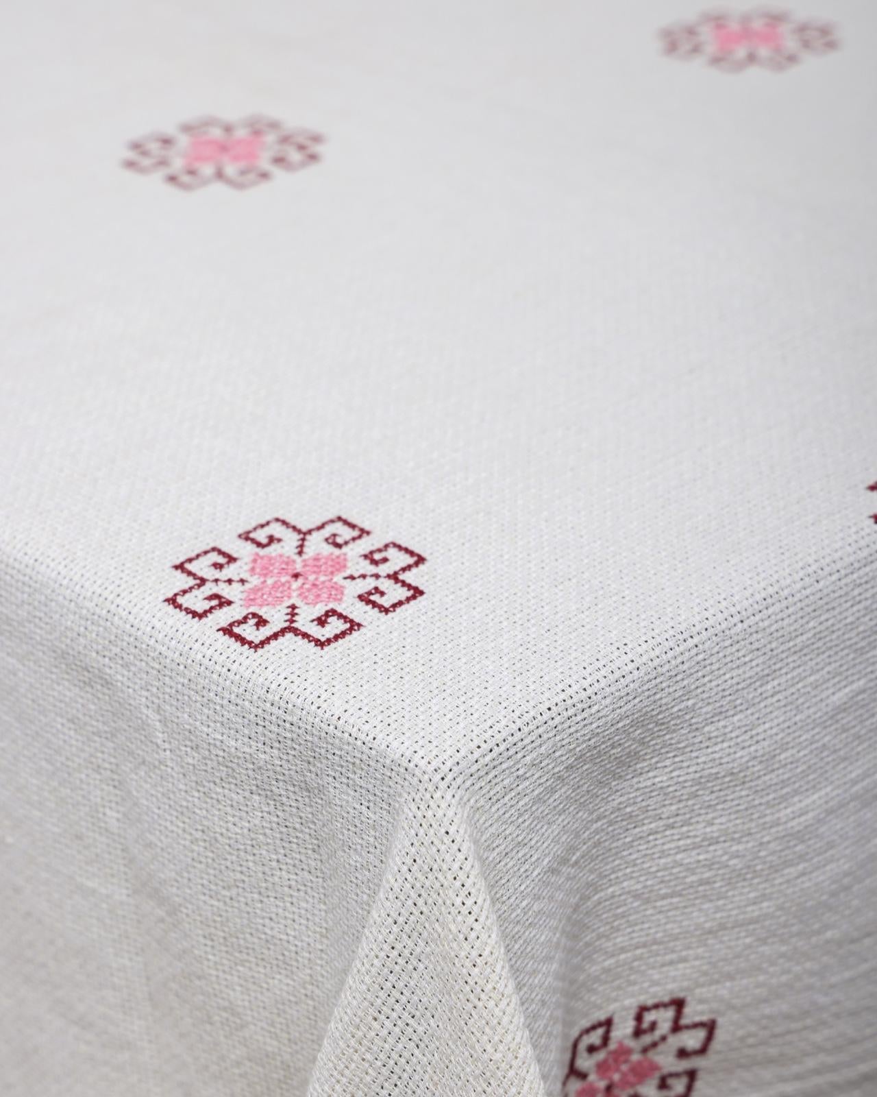 This dainty cross-stitch embroidered tablecloth exudes charm and elegance. Delicately stitched motif and intricate patterns adorn its soft fabric, adding a touch of vintage beauty. Perfect for special occasions or everyday grace, it enhances any table setting with timeless appeal, craftsmanship, and a hint of nostalgic warmth.